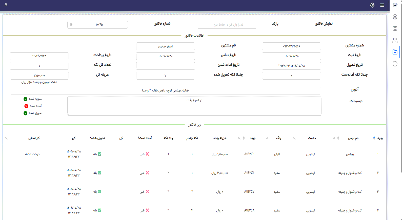 4. آیا وضعیت آمادهسازی البسه برای مشتری قابل مشاهده است؟